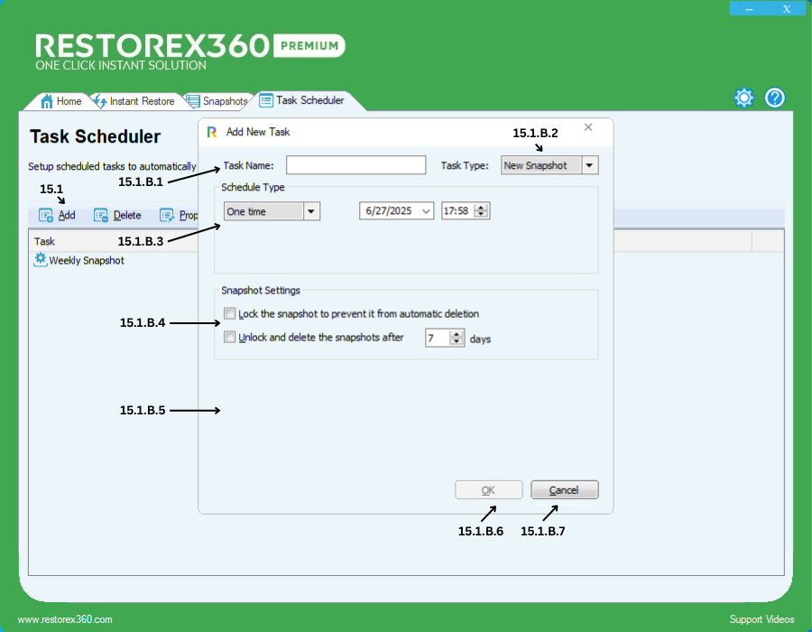 3. Set the Time for the new snapshot in a 24-hour format (e.g., 15:00 for 3:00 PM).