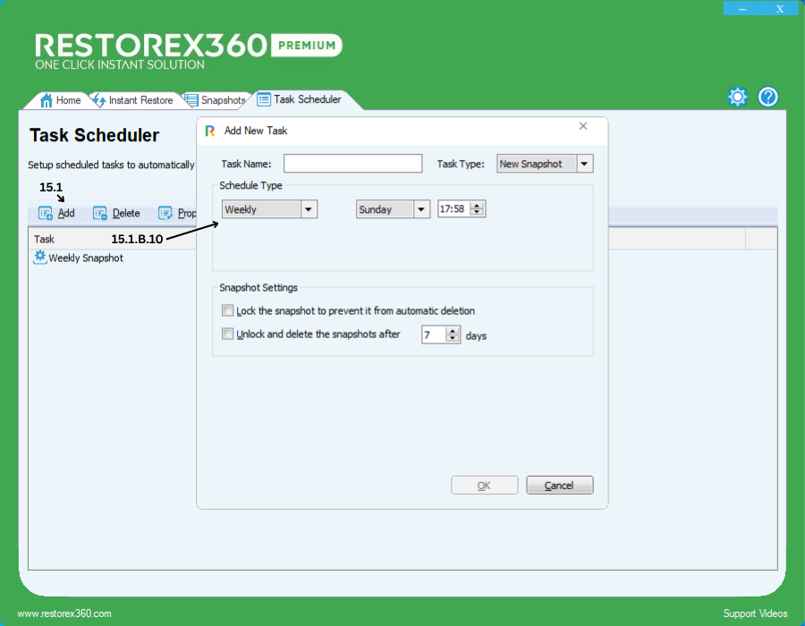 1. Select "Restart" as the schedule type if you want the PC to new snapshot every time it restarts.
