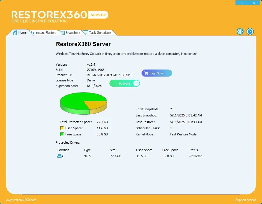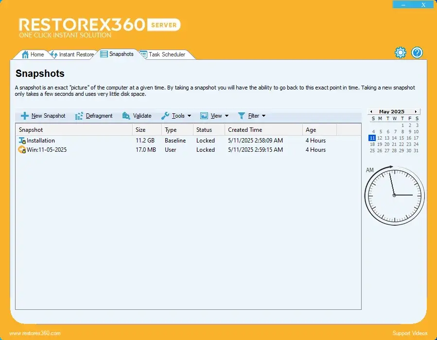 RestoreX360 addresses these challenges with its instant restore capabilities. It takes automated background snapshots, each completed in seconds, ensuring minimal disruption. With RestoreX360, your PC can be restored to a previous state in the time it takes to restart, offering robust and efficient protection.