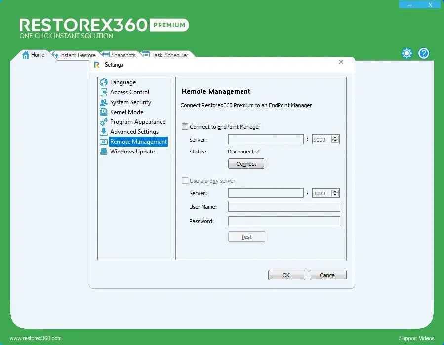 RestoreX360 Premium doesn’t take any data to our or other server or any cloud server. All snapshots will be stored on your local hard disk only Where install RestoreX360 Premium.