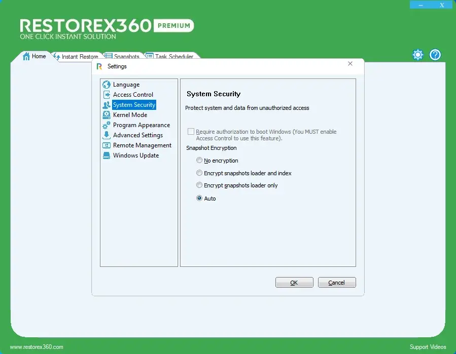 Secure in RestoreX360 means your data and system are protected at every level. From AES-256 encrypted snapshots to built-in malware removal and boot-level protection, it ensures your system stays safe from viruses, crashes, unauthorized changes, and faulty updates.