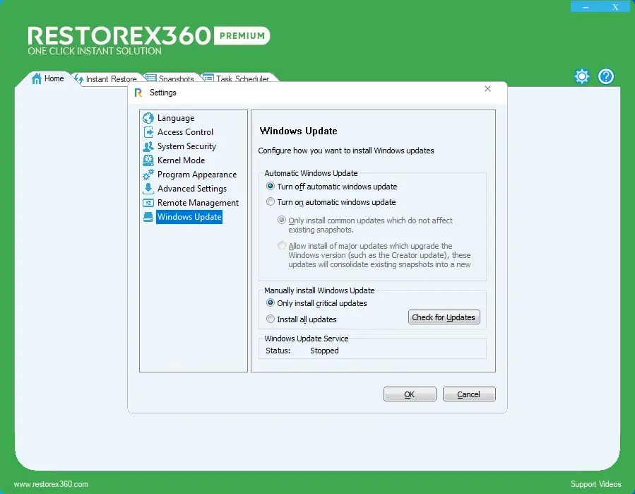 - Windows Update Management: Pause, defer, or roll back Windows updates to avoid system instability.