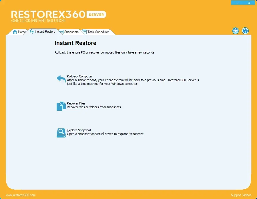 RestoreX360 quickly fixes Server boot issues – from startup errors and blue screens to endless boot loops. With easy-to-use repair tools, you’ll be back up and running in no time.