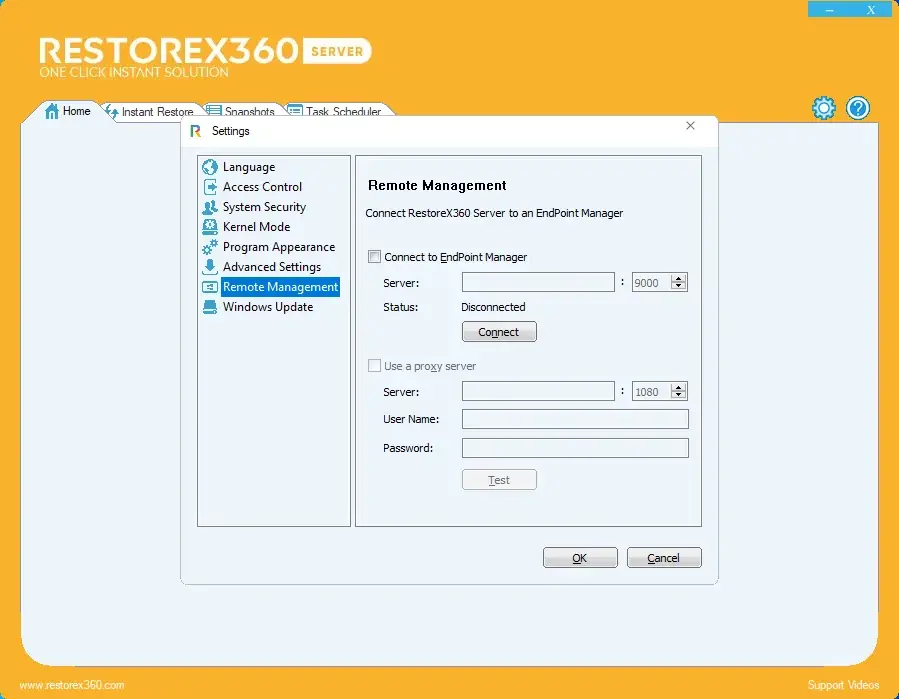 RestoreX360 Server doesn’t take any data to our or other server or any cloud server. All snapshots will be stored on your local hard disk only Where install RestoreX360 Server.