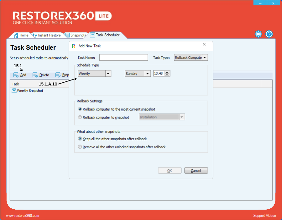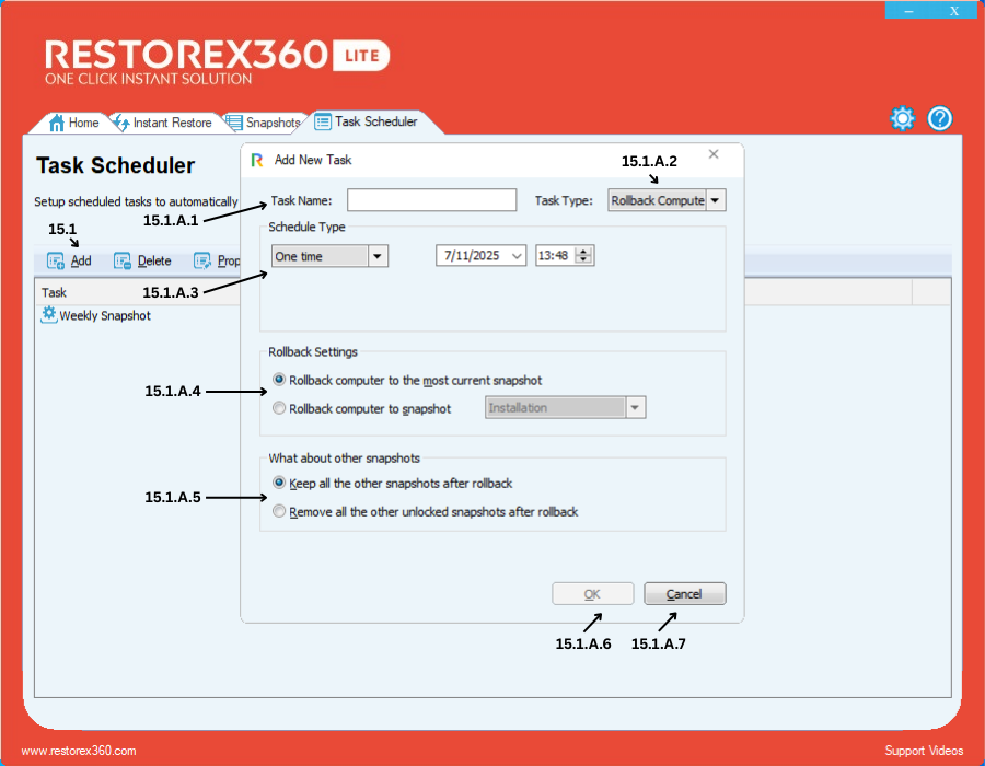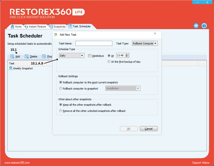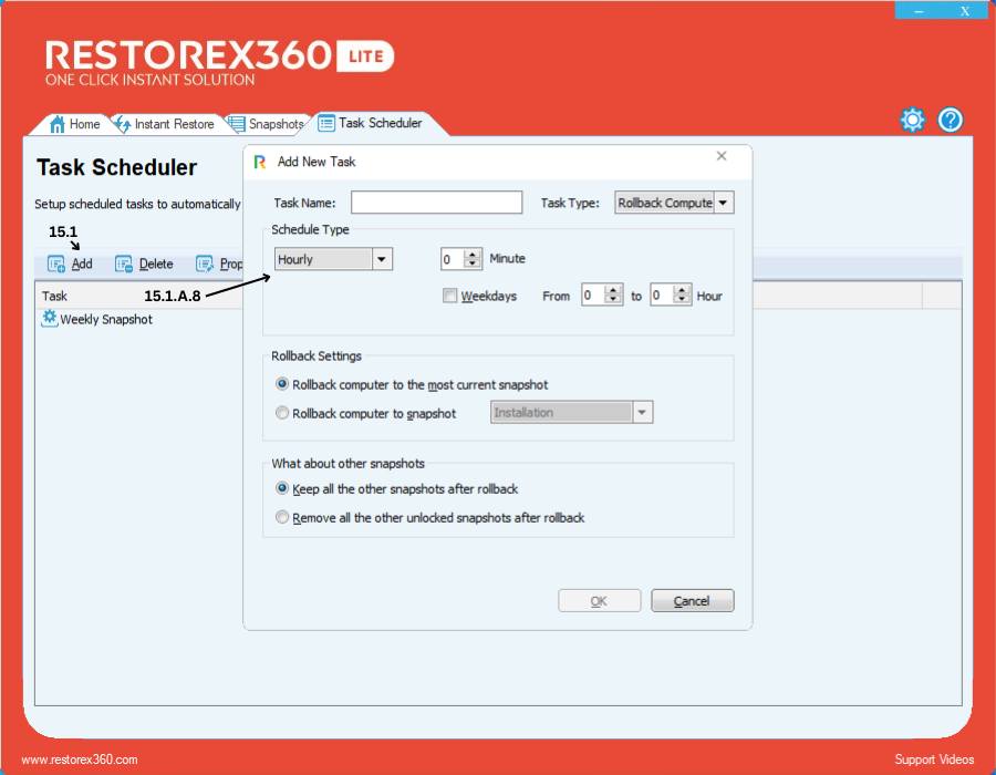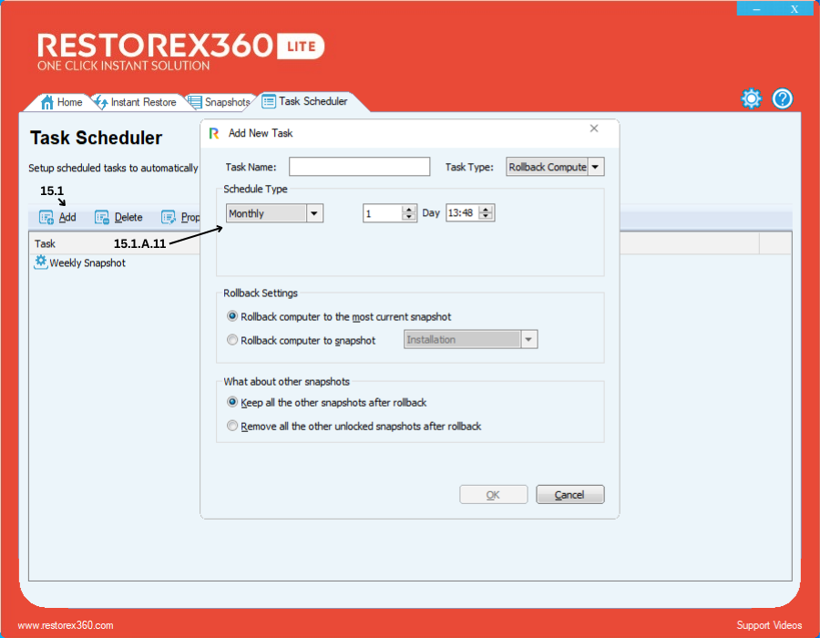 15.1.B - Create a New Snapshot Task to automatically capture system states.