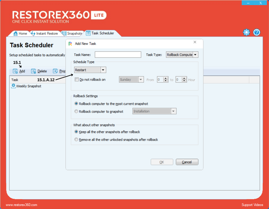 1. Select "Restart" as the schedule type if you want the PC to roll back every time it restarts.
