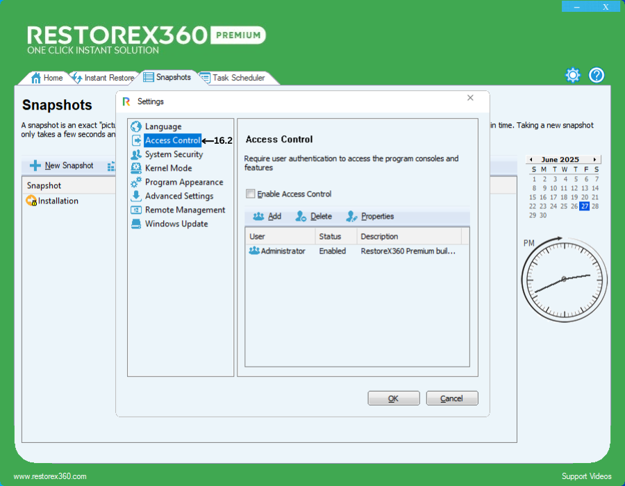 6.2. Access Control 16.2 Access Control – To enable Access Control, click on "Enable Access Control." 16.2.1 – Enter your desired password, re-enter it in the "Confirm Password" field, and click OK. Click OK again to confirm.