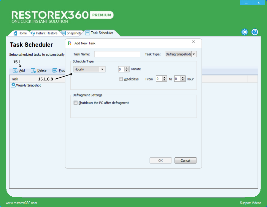15.1.C.8: Schedule Defrag Snapshots - Hourly