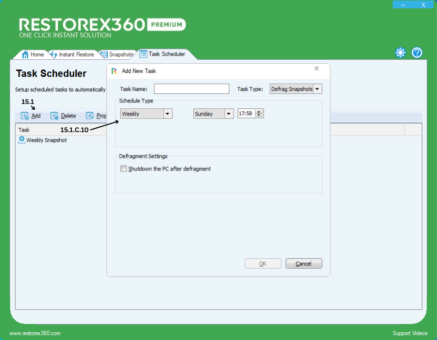You can schedule your PC to Defrag Snapshots on a daily basis by following these steps: