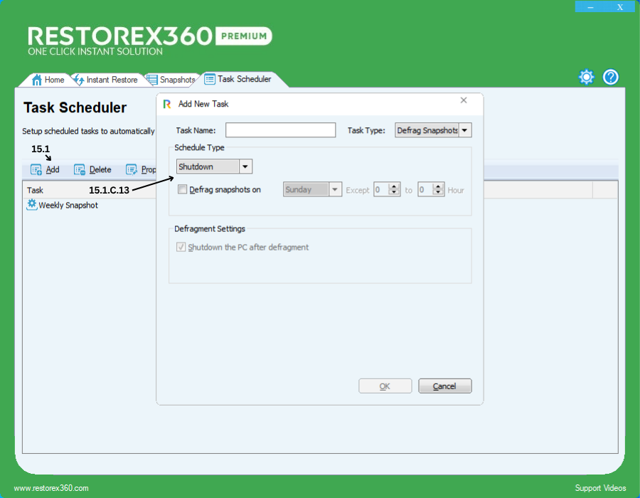 "Shutdown the PC after defragment."4. Once configured, the system will automatically perform Defrag Snapshots at every shutdown based on your selected schedule.