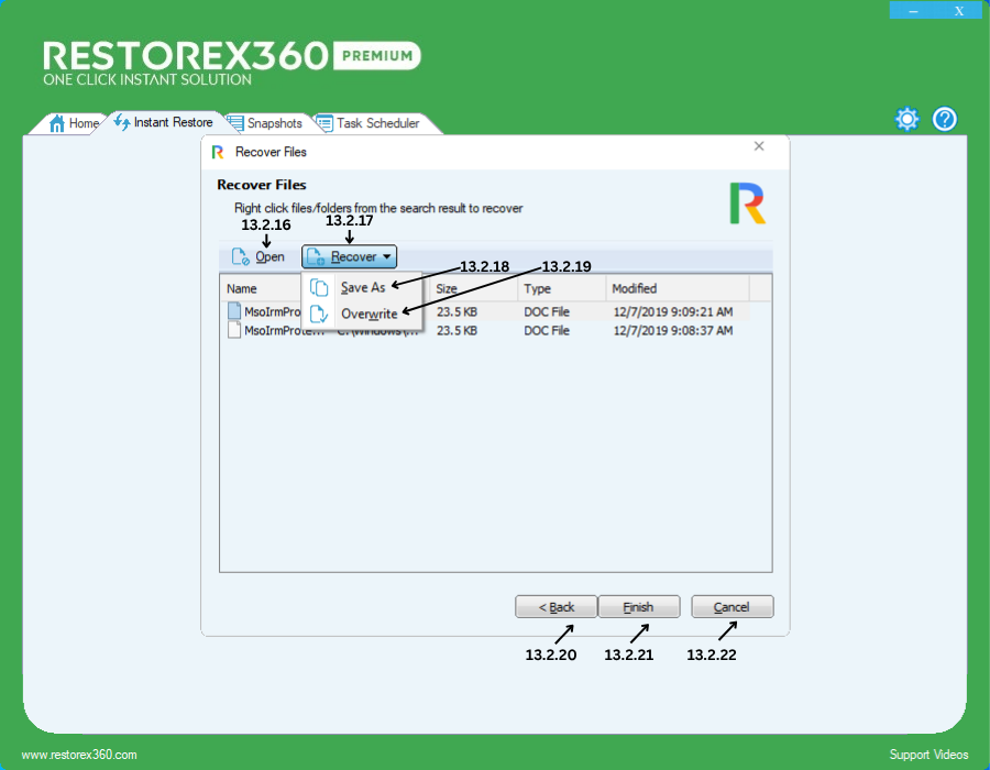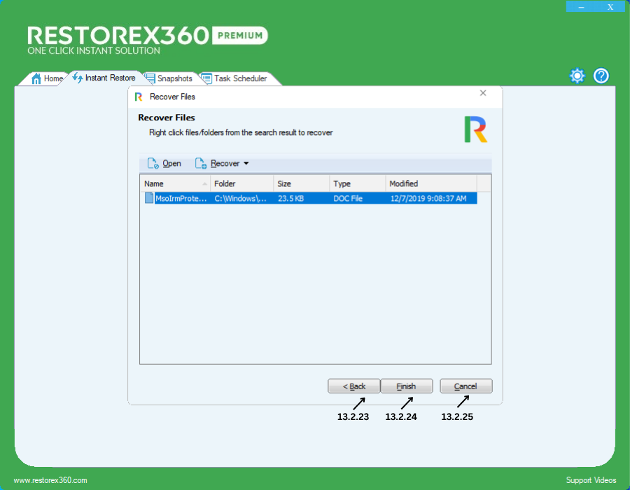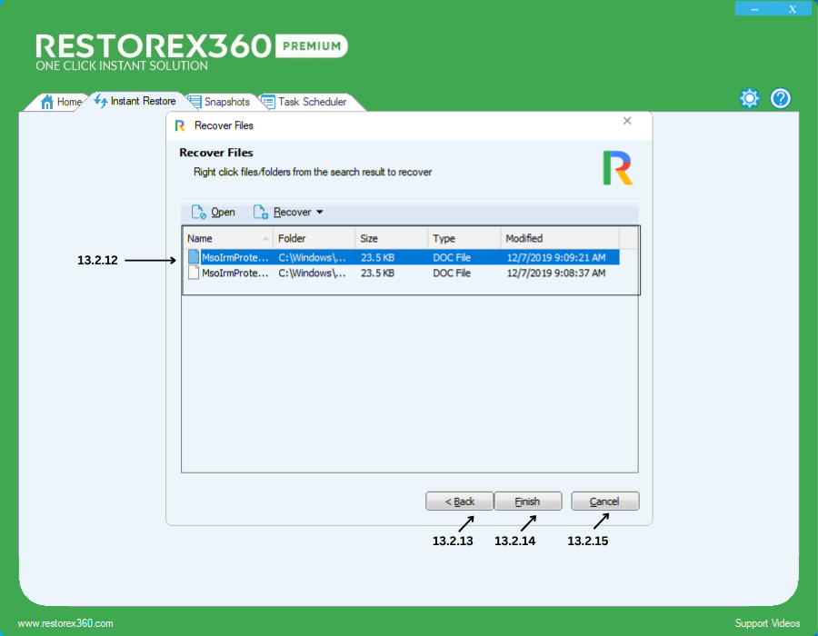 13.2.21- If you are ready to recover the selected file(s), click Finish to complete the process.