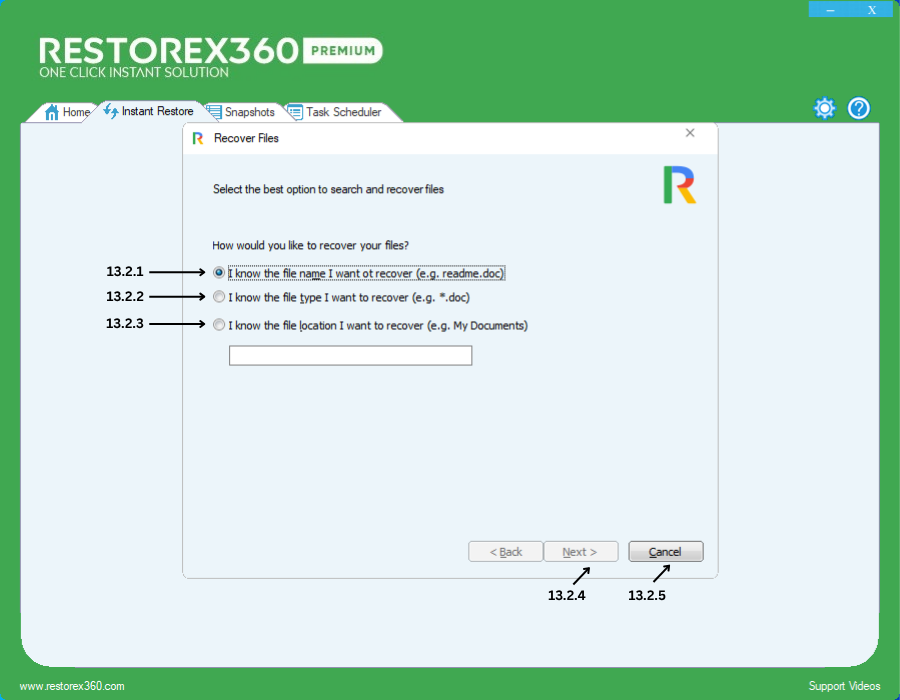 You can recover an entire folder if you know its exact name.Example: My Documents13.2.4 Next: After selecting the option and entering the extension, click Next to proceed to snapshot selection.