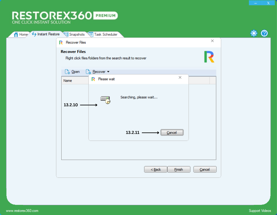 13.2.8 - If you're ready to search for your data within the selected snapshot, click Next. The system will begin scanning that snapshot for your specified file (s) or folder (s).