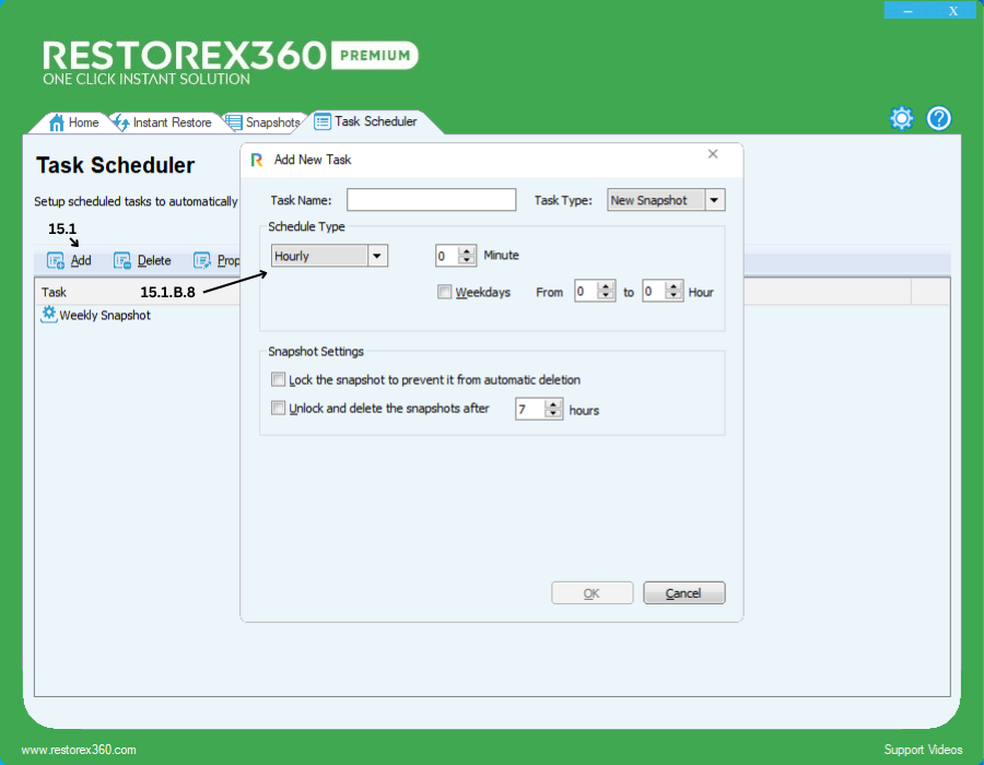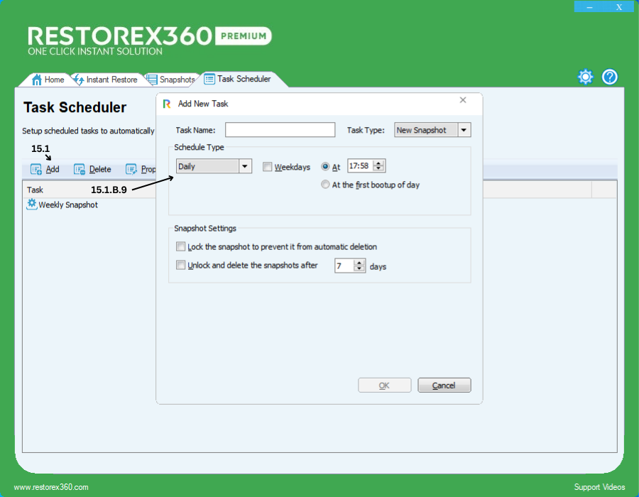 1. Select "Restart" as the schedule type if you want the PC to new snapshot every time it restarts.